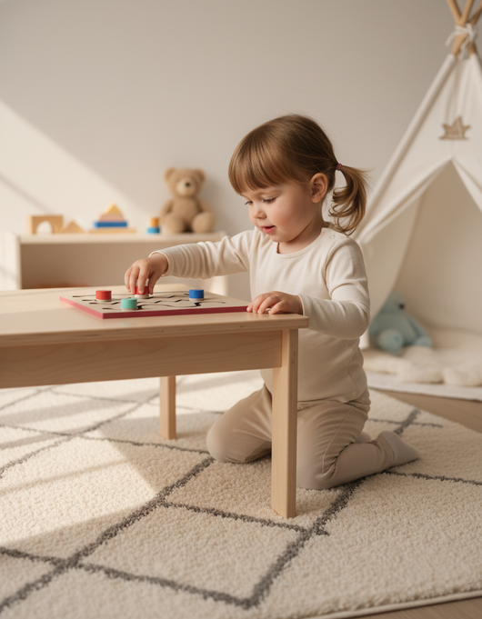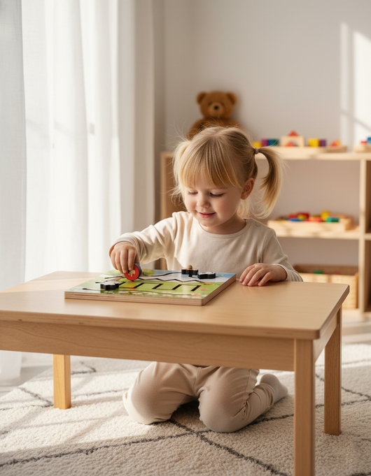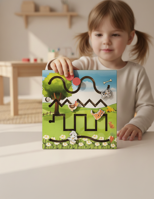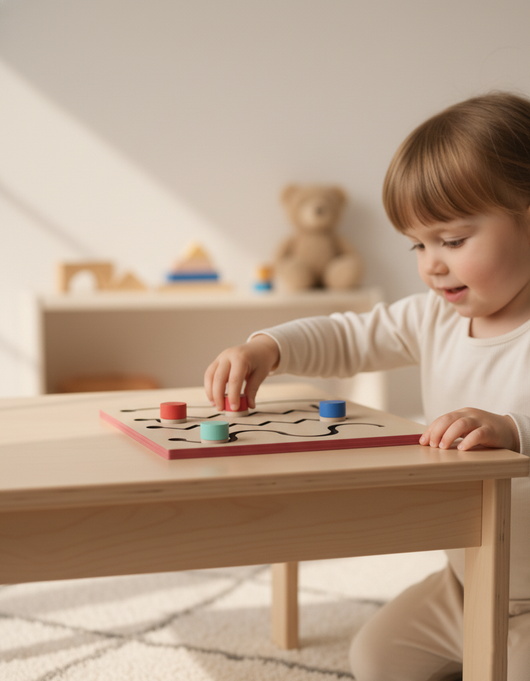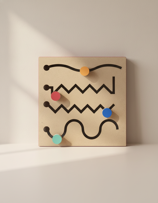 O Brinquedo Educativo 4 Linhas é um material pedagógico que transforma o simples ato de deslizar peças coloridas em uma atividade completa de coordenação motora e raciocínio visual. Produzido em madeira MDF de alta qualidade, ele desafia a criança a movimentar as peças ao longo de diferentes trajetos — retos, ondulados e em zigue-zague — estimulando a coordenação olho-mão, o controle de movimentos finos e a concentração.