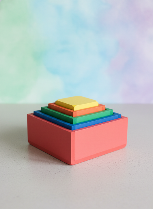 Produzido artesanalmente em madeira MDF resistente e pintura atóxica, o conjunto é composto por 5 cubos que se encaixam entre si, permitindo que a criança empilhe, organize ou guarde tudo dentro do cubo maior. Um brinquedo prático, seguro e cheio de possibilidades criativas.